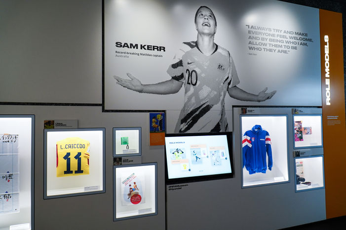 Tasked with curating a physical and virtual museum exhibit for the Women's World Cup in Australia and New Zealand, we drew inspiration from the game's illustrious history to inspire a new generation of players and fans. We aimed to honour remarkable stories, pay tribute to trailblazing icons, and showcase a stunning array of artefacts, all sourced directly from the FIFA Museum in Zurich.